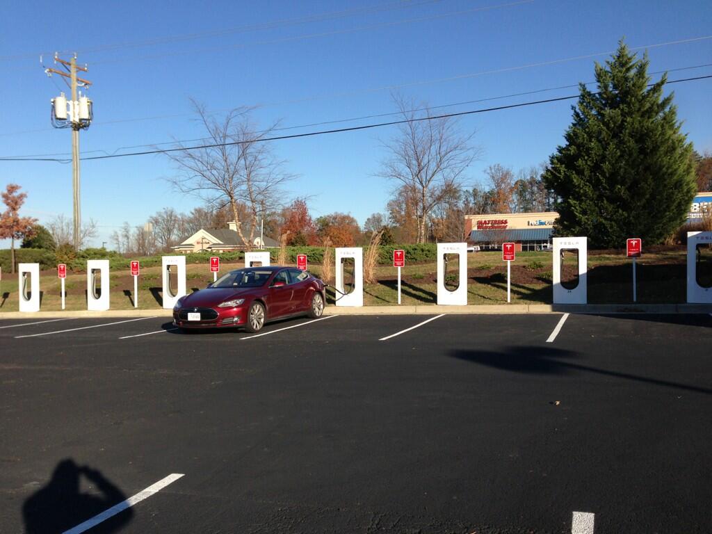 SC-listMy route, essentially Boston, MA to Charlotte, NC, was directly in the path of Tesla’s Superchargers.  I’d been waiting for the two I knew were coming – Virginia and North Carolina – as we already have Superchargers in Connecticut and Delaware.  Once I saw VA and NC were up and running, I took the week off so I could drive down Saturday and return the following Saturday.  All I have to do is pull up the list in the car and select which one I want to go to and the GPS will route me there.